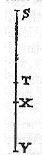| Sumptis enim a principio lationis S duobus spatiis ST, SV, quorum medium sit proportionale SX, tempus casus per ST ad tempus casus per SV erit ut ST ad SX, seu dicamus, tempus per SV ad tempus per ST esse ut VS ad SX.Cum enim demonstratum sit, spatia peracta esse in duplicata ratione temporum, seu (quod idem est) esse ut temporum quadrata; ratio autem spatii VS ad spatium ST sit dupla rationis VS {10} ad SX, seu sit eadem quam habent quadrata VS, SX; patet, rationem temporum lationum per SV, ST esse ut spatiorum, seu linearum, VS, SX. | For if we take two distances ST and SY measured from the initial point S, the mean proportional of which is SX, the time of fall through ST is to the time of fall through SY as ST is to SX; or one may say the time of fall through SY is to the time of fall through ST as SY is to SX.(Condition 2/02-th-02) Now since it has been shown that the spaces traversed are in the same ratio as the squares of the times; and since, moreover, the ratio of the space SY to the space ST is the square of the ratio SY to SX, it follows that the ratio of the times of fall through SY and ST is the ratio of the respective distances SY and SX. |