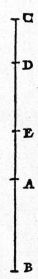 | Sit spatium CB, et in eo pars CD, data post principium lationis in C: oportet, partem alteram versus finem B reperire, quae conficiatur tempore eodem ac data CD. Sumatur media inter BC, CD, cui aequalis ponatur BA; et ipsarum BC, CA tertia proportionalis sit CE: dico, EB esse spatium quod post casum ex C conficitur tempore eodem ac ipsum CD. Si enim intelligamus, tempus per totam CB esse ut CB, erit BA (media {10} scilicet inter BC, CD) tempus per CD; cumque CA media sit inter BC, CE, erit CA tempus per CE: est autem tota BC tempus per totam CB; ergo reliqua BA erit tempus per reliquam EB post casum ex C: eadem vero BA fuit tempus per CD; ergo temporibus aequalibus conficiuntur CD et EB ex quiete in A: quod erat faciendum. | Let the given distance be CB and let CD be that part of it which is laid off from the beginning of motion. It is required to find another part, at the end B, which is traversed in the same time as the assigned portion CD. Let BA be a mean proportional between BC and CD; also let CE be a third proportional to BC and CA. Then, I say, EB will be the distance which, after fall from C, will be traversed in the same time as CD itself. For if we agree that CB shall represent the time through the entire distance CB, (Condition 2/02-th-02-cor2) then BA (which, of course, is a mean proportional between BC and CD) will represent the time along CD; and since CA is a mean proportional between BC and CE, (Condition 2/02-th-02-cor2) it follows that CA will be the time through CE; but the total length CB represents the time through the total distance CB. (Condition 2/11-th-11) Therefore the difference BA will be the time along the difference of distances, EB, after falling from C; but this same BA was the time of fall through CD. Consequently the distances CD and EB are traversed, from rest at A, in equal times. Q. E. F. |