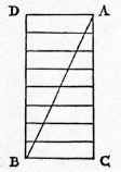 | Istud idem alia aggressione concludere poterimus, consimile resumentes ratiocinium ei, quo usi sumus in propositionis primae demonstratione.Resumentes enim triangulum ABC, nobis repraesentans in suis parallelis basi BC {243} velocitatis gradus continue adauctos iuxta temporis incrementa, ex quibus, cum infinitae sint, veluti infinita sunt puncta in linea AC et instantia in quovis tempore, exurget superficies ipsa trianguli; si intelligamus, motum per alterum tantum temporis continuari, sed non amplius motu accelerato, verum aequabili, iuxta maximum gradum velocitatis acquisitae, qui gradus repraesentatur per lineam BC; ex talibus gradibus conflabitur aggregatum consimile parallelogrammo ADBC, quod duplum est trianguli ABC: quare spatium quod cum gradibus {10} consimilibus tempore eodem conficietur, duplum erit spatii peracti cum gradibus velocitatis a triangulo ABC repraesentatis.At in plano horizontali motus est aequabilis, cum nulla ibi sit causa accelerationis aut retardationis; ergo concluditur, spatium CD peractum tempore aequali tempori AC, duplum esse spatii AC: hoc enim motu ex quiete accelerato, iuxta parallelas trianguli, conficitur; illud vero, iuxta parallelas parallelogrammi, quae, dum fuerint infinitae, duplae sunt ad parallelas infinitas trianguli. | The same result may be obtained by another method of approach, namely, by returning to the same line of argument which was employed in the proof of the first proposition.Let us {243} consider the triangle ABC, which, by lines drawn parallel to its base, (Condition 2/00-th-00-dialog1) represents for us a velocity increasing in proportion to the time; if these lines are infinite in number, just as the points in the line AC are infinite or as the number of instants in any interval of time is infinite, they will form the area of the triangle. Let us now suppose that the maximum velocity attained-that represented by the line BC-to be continued, without acceleration and at constant value through another interval of time equal to the first. From these velocities will be built up, in a similar manner, the area of the parallelogram ADBC, which is twice that of the triangle ABC; (Condition Aristot-space-prop) accordingly the distance traversed with these velocities during any given interval of time will be twice that traversed with the velocities represented by the triangle during an equal interval of time.But along a horizontal plane the motion is uniform since here it experiences neither acceleration nor retardation; therefore we conclude that the distance CD traversed during a time-interval equal to AC is twice the distance AC; for the latter is covered by a motion, starting from rest and increasing in speed in proportion to the parallel lines in the triangle, while the former is traversed by a motion represented by the parallel lines of the parallelogram which, being also infinite in number, yield an area twice that of the triangle. |
