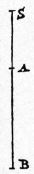 | veluti, posito quod tempus per AB ex quiete in A sit AB, addito AS, tempus per AB post SA erit excessus medii inter SB, BA super medium inter BA, AS. | Thus, for instance, if we agree that AB represents the time of fall, from rest at A, through the distance AB, and that AS is the increment, the time required to traverse AB, after fall through SA, will be the excess of the mean proportional between SB and BA over the mean proportional between BA and AS. |
